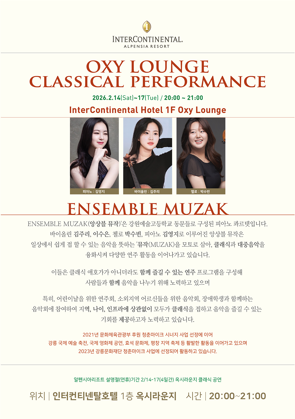 [공연] 설 명절 옥시 라운지 클래식 공연