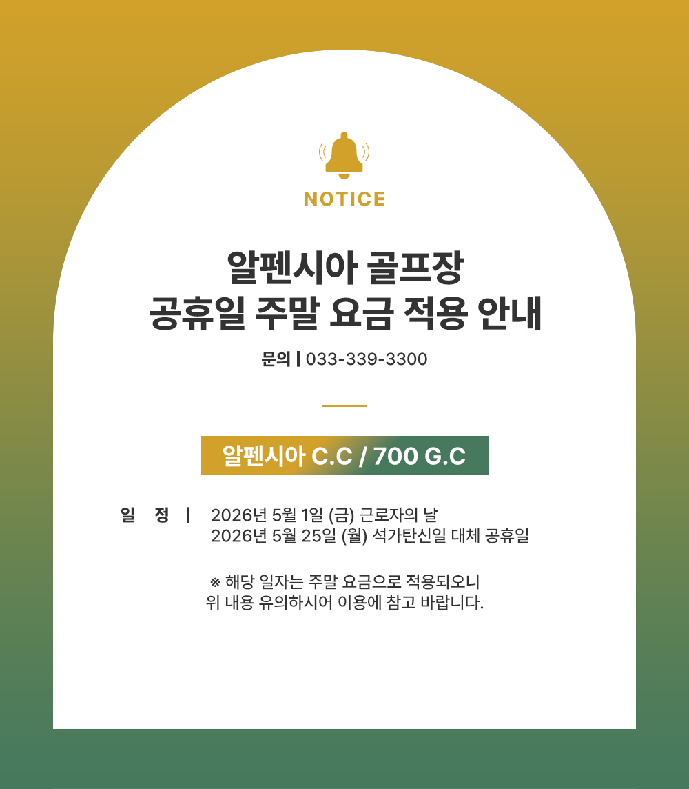 [공지] 알펜시아 골프장 공휴일 주말 요금 적용 안내