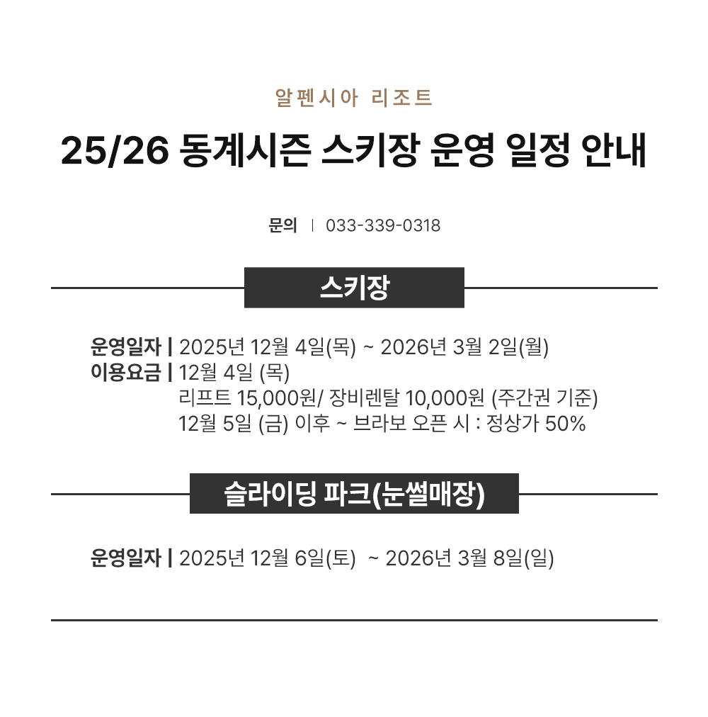 [공지]25/26 동계시즌 스키장 운영 일정 안내