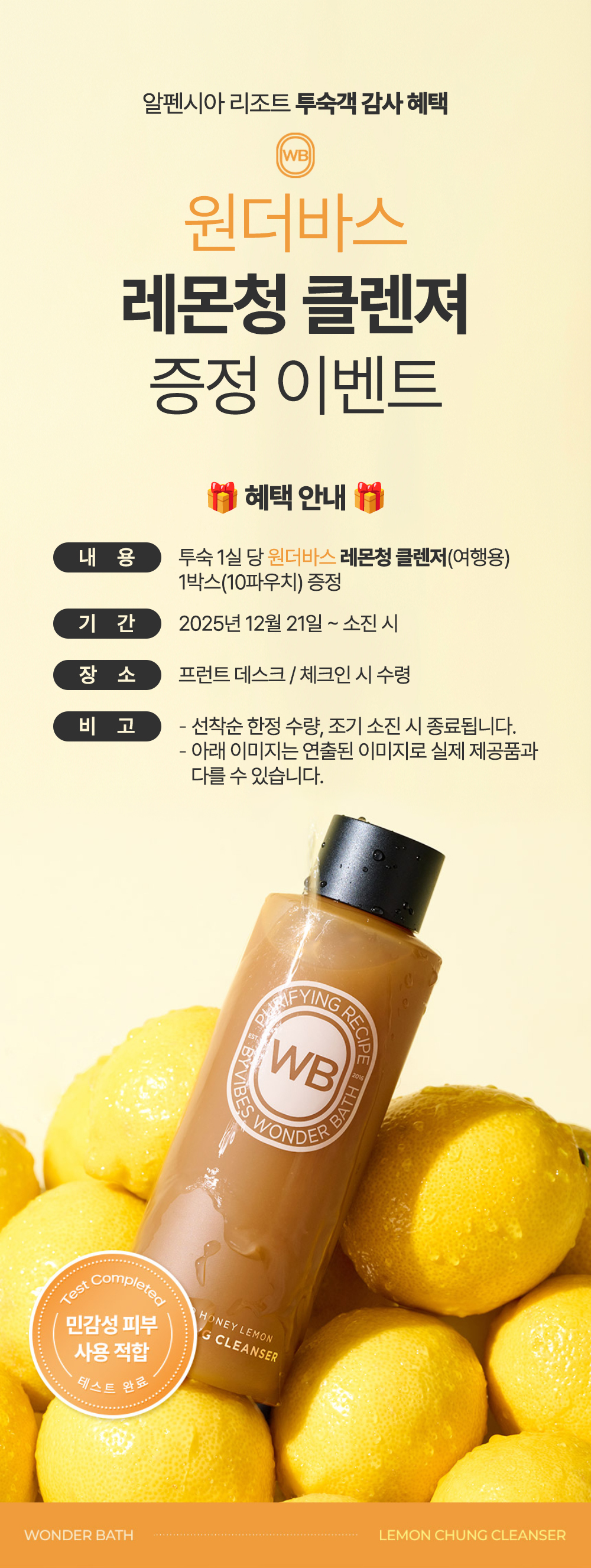 투숙객 감사 혜택 - 원더바스 레몬청 클렌져(여행용) 증정 이벤트